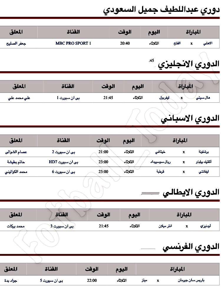 مباريات الثلاثاء ،،،،، لدوريات """"" العالميه