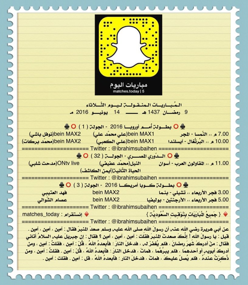¤¤¤ مباريات الجمعه •*¨`*:• يورو 2016 & كوبـا أمريكــا 2016 •*¨`*:• | عبدالله بن علي الدوسري | :: القسم الرياضي :: | 1 | 10-06-2016 11:45 PM |